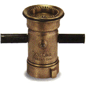 Boquilla para manguera contra incendio fabricada en bronce de tres pasos, regulable cierre-chorro y neblina con capuchón de neopreno para protección a golpes y caídas.